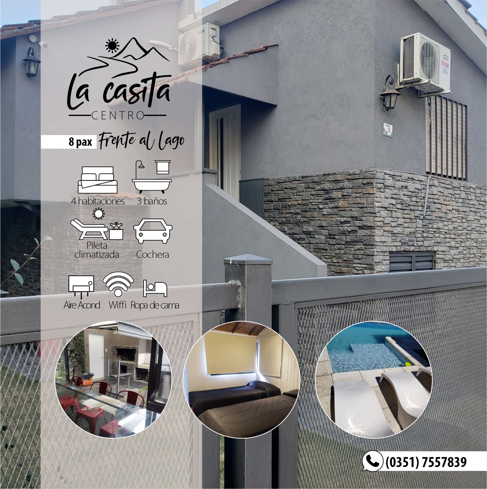 La casa cuenta con ingreso mediante cerradura inteligente con tarjeta, pileta climatizada (servicio opcional), cuatro dormitorios, ambientes climatizados, tres baños —uno con ducha escocesa—, asador, portón eléctrico, alarma, WiFi y cochera cubierta.