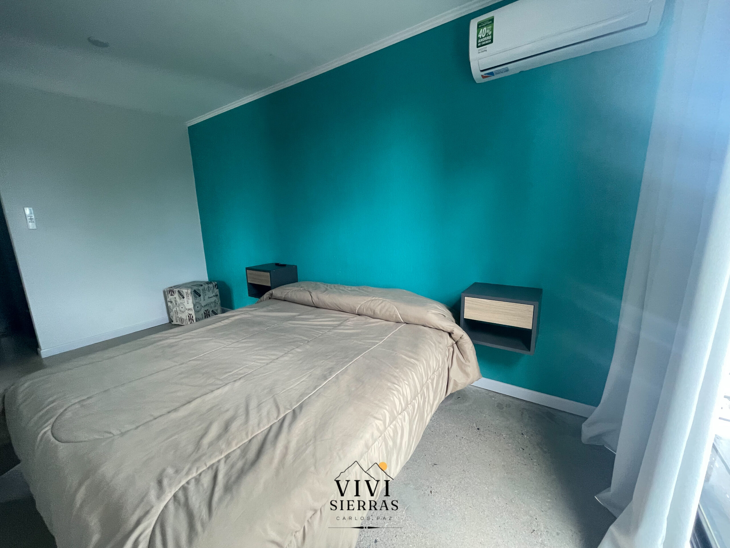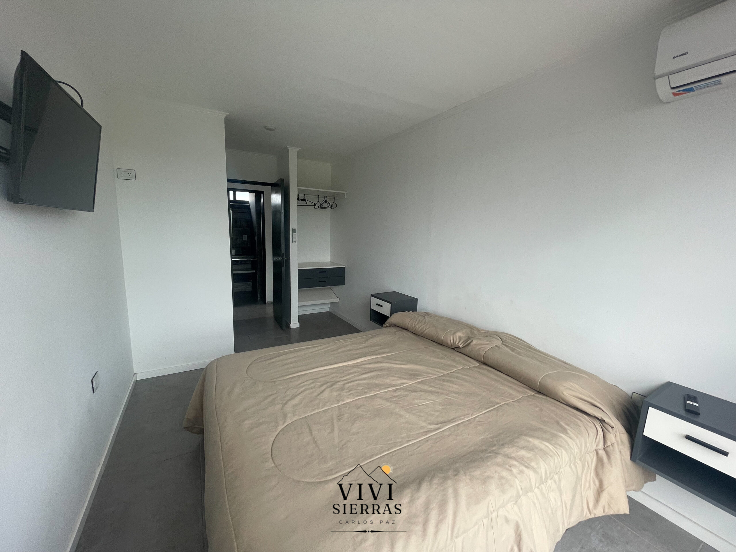 Dispone de dos dormitorios amplios, ambos con vestidores y aire acondicionado; el principal con baño en suite y los dos con salida a un exclusivo balcón con vista a las sierras y al lago.